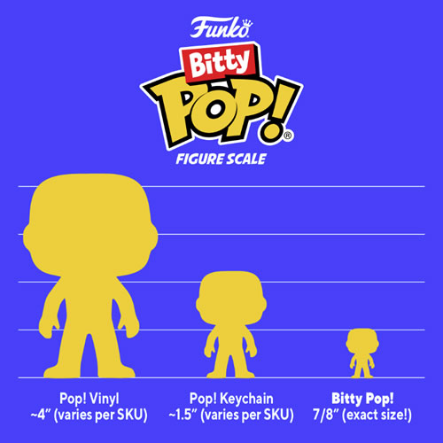 - Bitty Pops! are packaged in hard acrylic cases with detachable bottom lids.