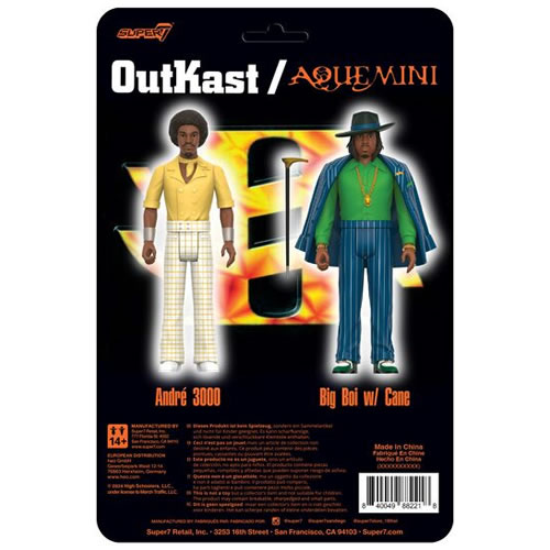 • The latest 3.75” scale, articulated OutKast ReAction Figures of Big Boi and André 3000 are inspired by the cover art from the iconic duo’s third studio album, Aquemini, and come packaged on a special 2-pack cardback- and you know we had to give Big Boi walking cane and removable jacket accessories!