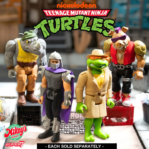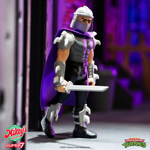 • This 3.75” scale, articulated Teenage Mutant Ninja Turtles ReAction Figure of Shredder is inspired by the classic animated series, comes packaged on a special pizza slice-shaped cardback, and includes a sword accessory.