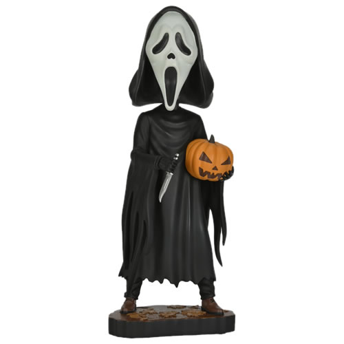 • This addition to NECA’s hand-painted Head Knocker line brings you horror icon Ghost Face with a pumpkin, cast in resin and then carefully painted for incredible detail.