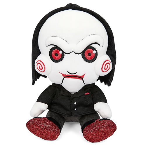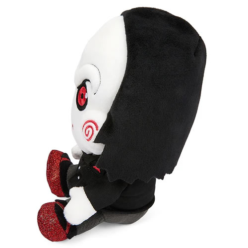 • Jigsaw’s creepy lil’ messenger from the Saw horror movie franchise has never been so cuddly. You’ll want to squeeze him tighter than a reverse bear trap!