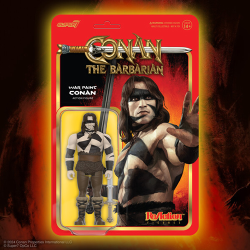 • The latest articulated, 3.75” scale Conan the Barbarian ReAction Figure of War Paint Conan is inspired by the 1982 film of the same name and features the mighty hero looking ready for battle, and comes with an Atlantean Sword accessory.