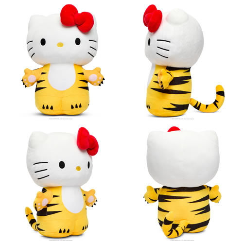 • The sweet icon is tiger-striped and dressed to impress, wearing a removable Hello Kitty Year of the Tiger jacket with tiger hood.
