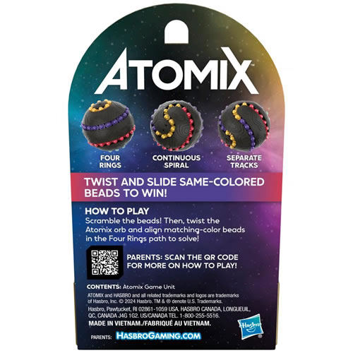 • SPHERICAL BRAINTEASER GAME: Get ready for addictive fun with the Atomix game! Twist it, turn it, and slide all the same-colored beads together to solve the puzzle.