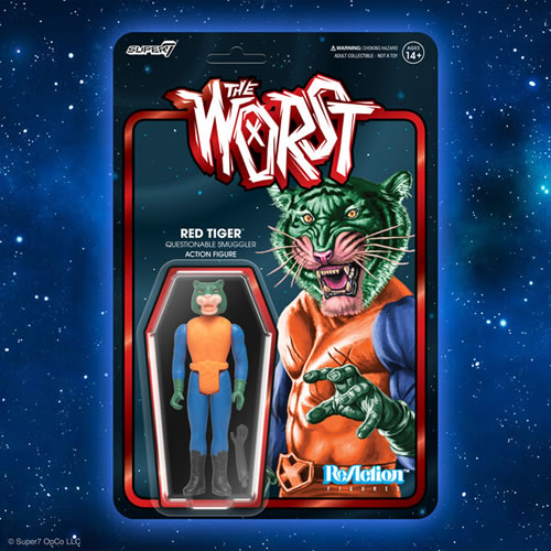 • The latest 3.75” scale, articulated The Worst ReAction Figure of Red Tiger: Questionable Smuggler is not your average food delivery guy; this Scum Squad member is outfitted in a bold orange vest (perhaps so he’s visible on his space cruiser) and comes with a severed arm accessory!